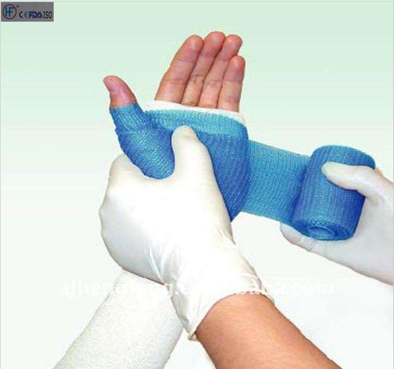 首先我们要选择合适的规格尺寸,在固定部位用棉卷或者棉套作为衬垫,戴上乳胶手套后打开包装,取出绷带,然后将绷带放入常温水中浸泡2-3秒并挤压2-3吃,取出后挤去绷带内的多余水分。