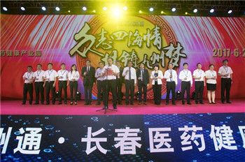上午9点38分,长春市委常委、长春新区管委会主任李忠斌先生、四环医药集团总裁郭维城先生、山西广誉远国药有限公司掌门人郭家学先生、长春市中和医药药材有限公司董事长陆凤女士、吉林敖东延边药业股份有限公司董事长郭淑芹女士、上海凯宝药业股份有限公司董事长刘宜善先生、白城市医院院长宋险峰先生、九州通医药集团董事长刘宝林先生、长春九州通医药有限公司董事长赵立红女士9位领导共同登上舞台为九州通·长春健康产业园落成仪式进行启动,开启了长春九州通的新篇章。