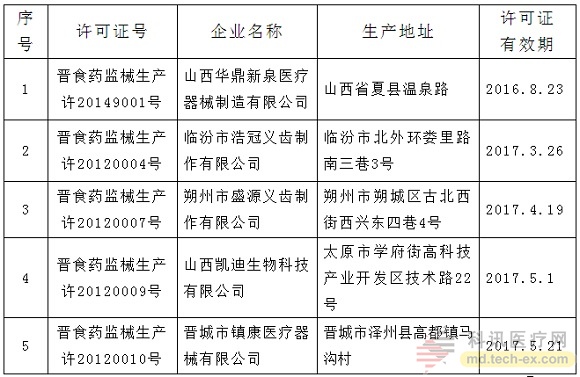 山西省食药监局注销5家企业《医疗器械生产企业许可证》