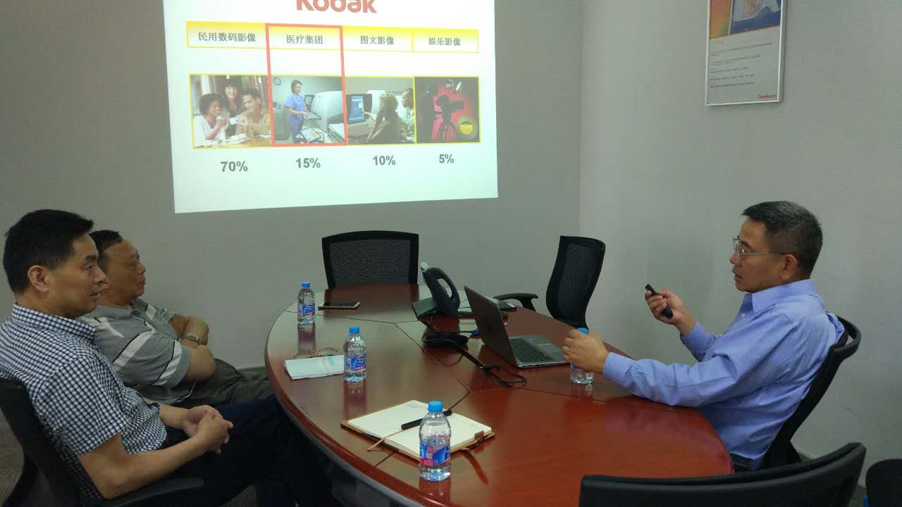 刘杰总裁向王震会长等详细介绍了锐珂亚太投资管理(上海)有限公司的发展历程。锐珂医疗作为世界上第一包X光胶片、世界上第一台医用干式激光成像仪和世界上第一台无线DR探测器的创造者,有着100 多年的世界医学成像领域的发展历史。锐珂医疗坚持“创新、务实、诚信,走专业化道路”的理念,始终秉承着“客户至上,以人为本、出类拔萃、志在必赢、不断创新”的企业价值观与文化,企业一直奉行“扎根中国、奉献中国、回馈社会”,注重企业与社会的协调发展。