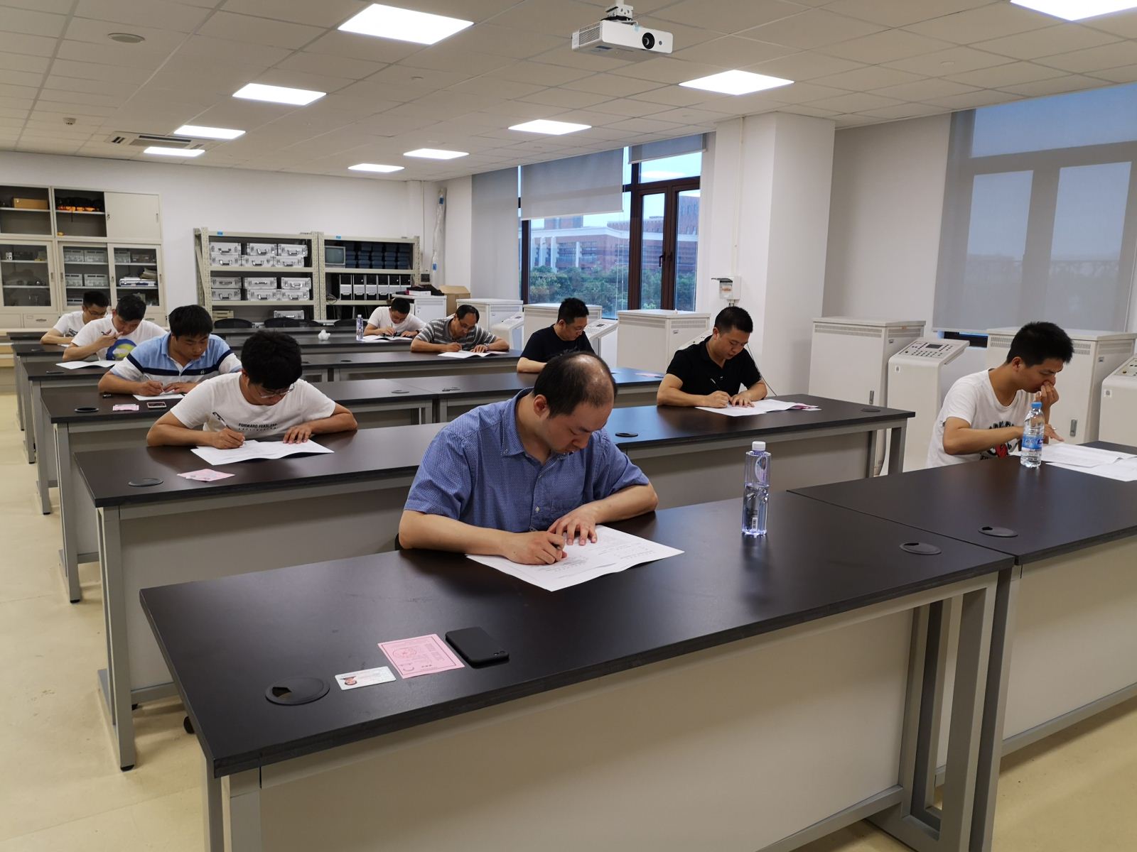 经历了酷暑和台风“安比”的严峻考验,为期8天的“超声诊断仪安装维修(专项职业能力)”首期培训,在老师、学员们的共同努力下于2018年7月22日在上海健康医学院圆满收官。25名学员风雨无阻、冒着酷暑坚持学习完成考核。7月22日,协会鉴定所对学员进行了统一的理论与实训考核并开展了“超声诊断仪安装维修(专项职业能力)比赛”。考核、比赛当天,基地分别配备了考点负责人、考务员和多名考评员、技术支持人员等,上海市职业技能鉴定中心特派督考专员莅临现场,全程关注与监督,考场和比赛现场纪律严格,秩序井然最终,25名学员均顺利通过了考核,成绩优秀,并最终决出了比赛第一、二、三名。