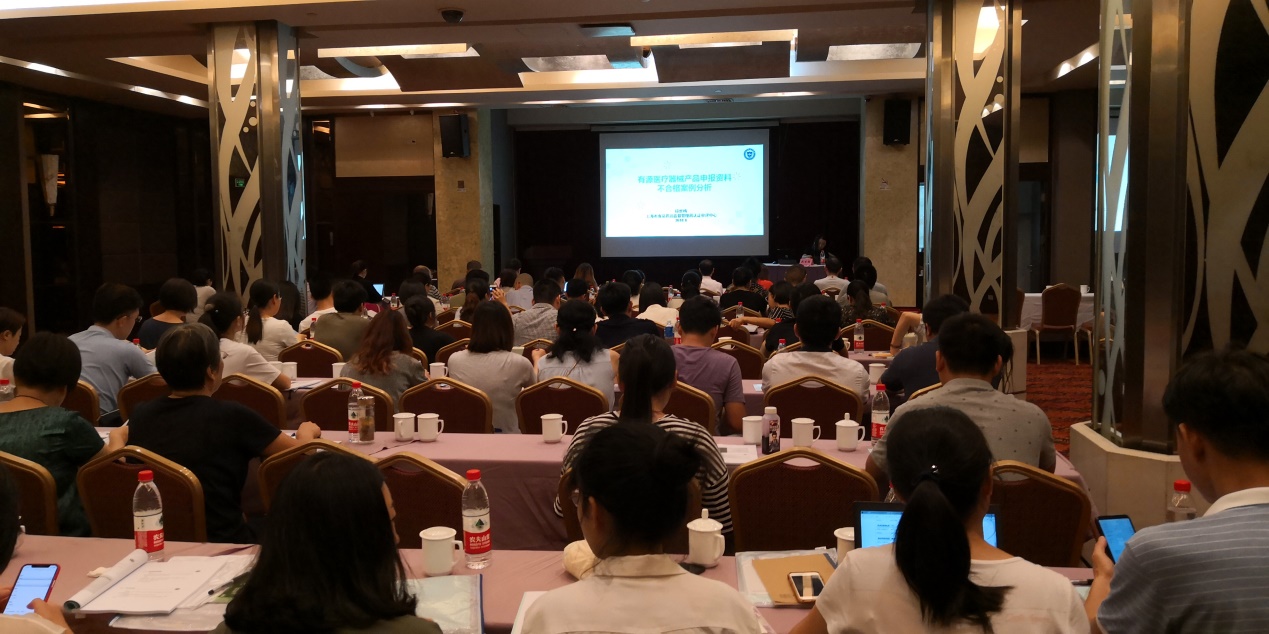 上海市食品药品监督管理局认证审评中心的钱虹、仲志真等老师分别为学员作了医疗器械注册申报资料要求、无源/有源/诊断试剂产品注册申报资料不合格案例分析的专题培训。