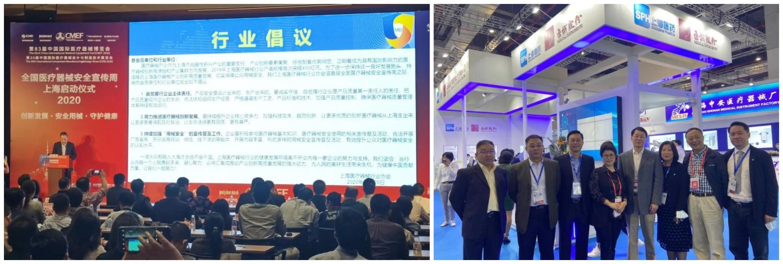 展会期间,上海市药品监督管理局闻大翔局长、上海医疗器械行业协会沈波会长、夏秋玉秘书长参观了上海展团。10月20日,沈波会长在全国医疗器械安全宣传周上海启动仪式上代表本市医疗器械行业单位发出关于“助推产业创新发展,切实保障用械安全”的倡议,他号召行业内相关单位自觉履行企业主体责任、努力推进医疗器械创新发展、持续加强“用械安全”的宣传普及工作。
