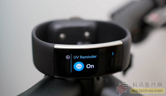 微软Band 2可能是目前市场中最容易买到的紫外线监测可穿戴设备,它内置紫外线传感器,可以测试阳光中紫外线强度,并提供警报和防晒建议。另外,它本身也是一款功能十分强大的运动手环,可以实现运动、心率监测,通过应用程序,还能够实现运动教练功能,非常强大。